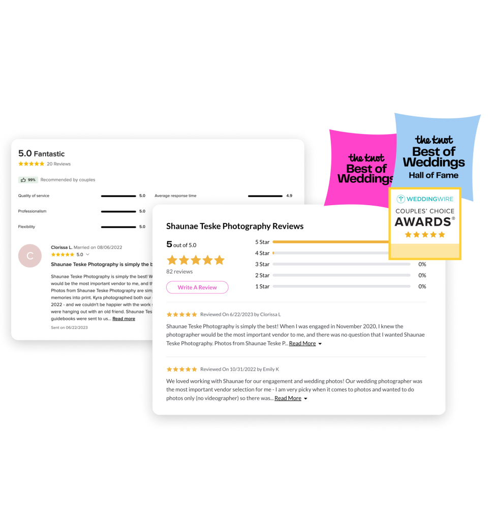 Make your Storefronts work harder for you and book more weddings by showcasing your reviews. Pros with reviews receive more than double the number of leads on average than pros who don’t have any on their Storefronts, so start collecting today!